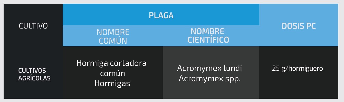 · Agrimex-I es un cebo hormiguicida a, listo para usar, formulado especial mente para controlar hormigas cortadoras. Su atractivo hace que las hormigas dejen su carga y recojan el cebo, para llevarlo al hormiguero. Una vez ahà AGRIMEX-I actúa y elimina el hormiguero. Actúa sobre las hormigas por contacto e ingestión.